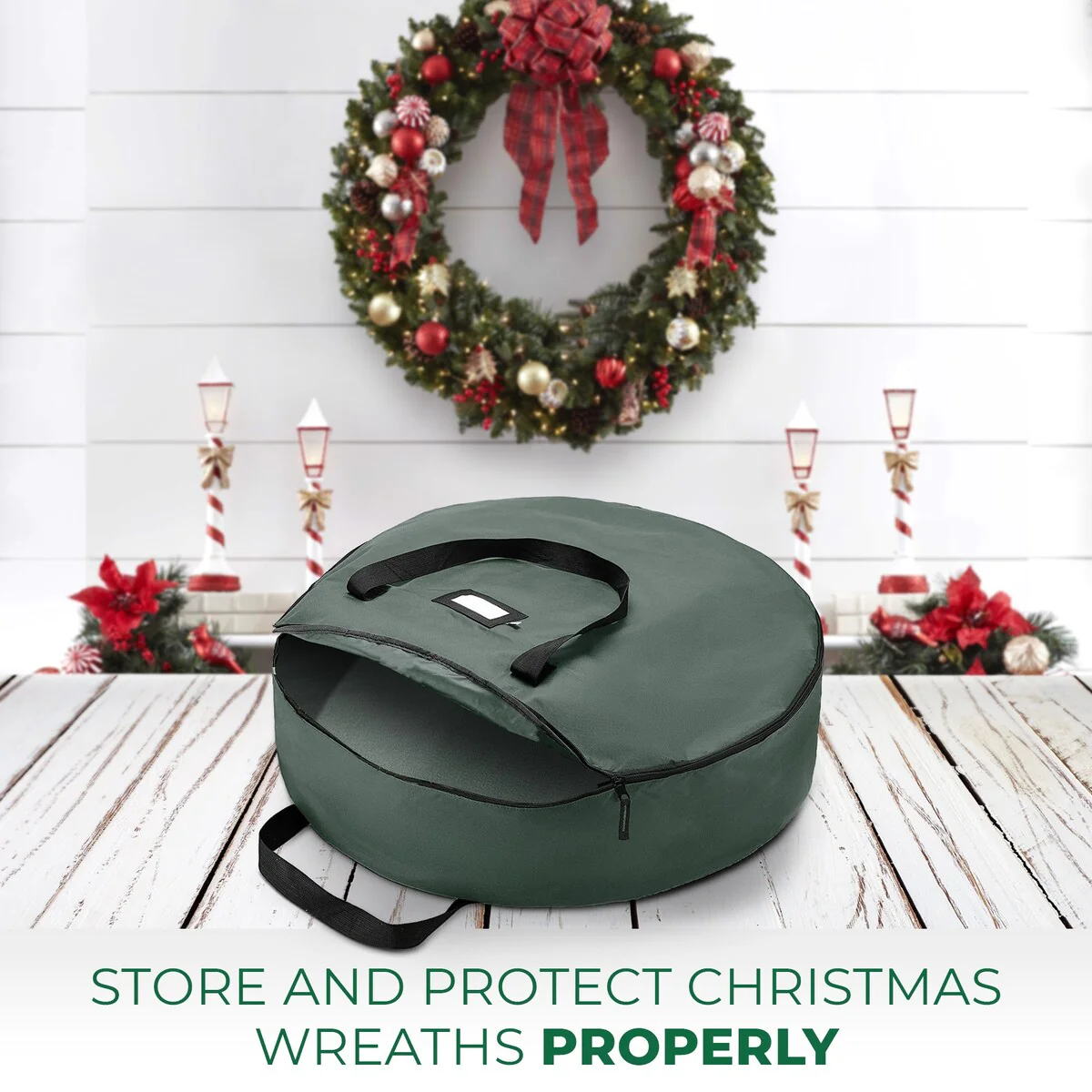 Superior Christmas Wreath Storage Bag Holder, 30"Tear Resistant - Green