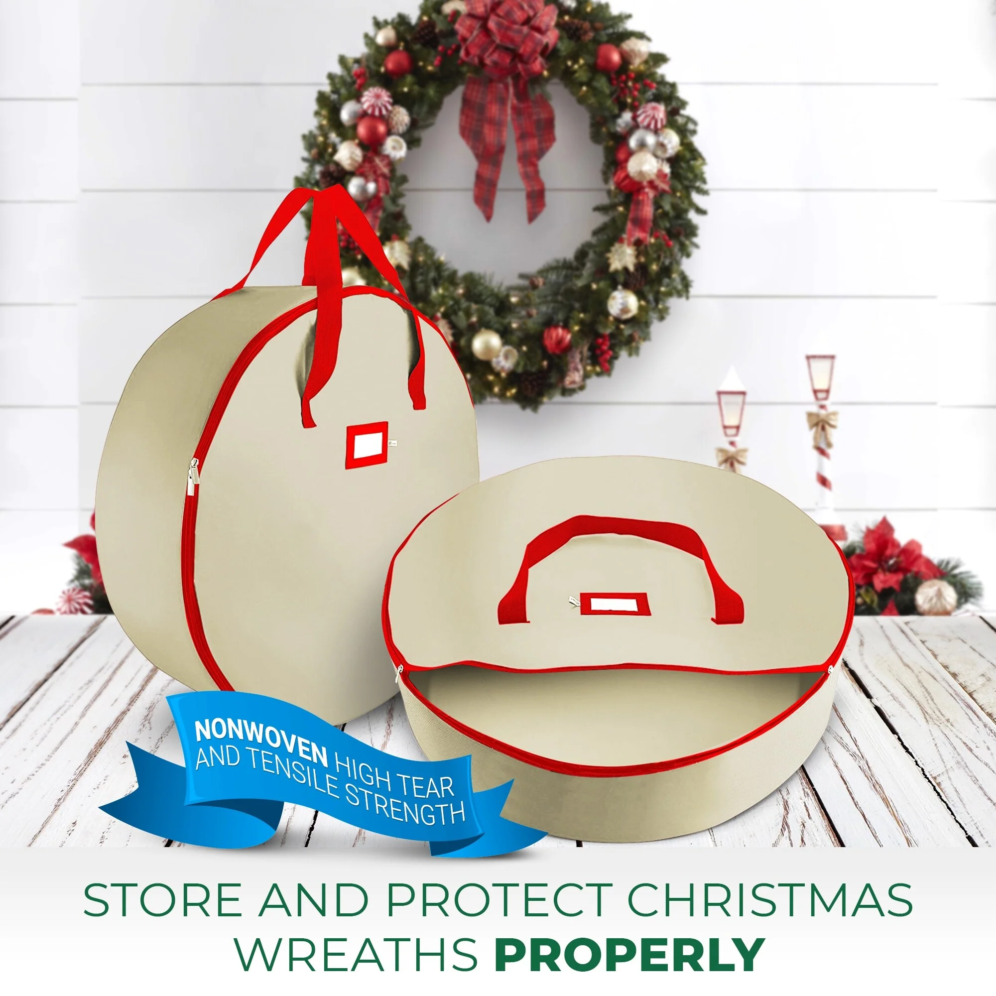 24 in Ivory Nonwoven Christmas Wreath Storage Bag Holder 2-Pack - 24 inch