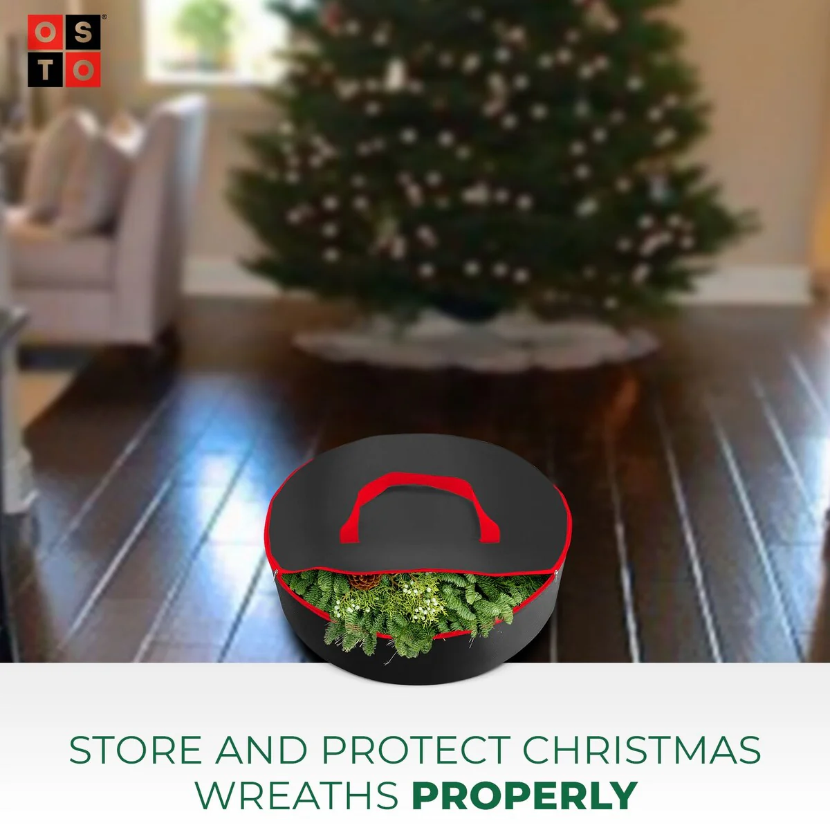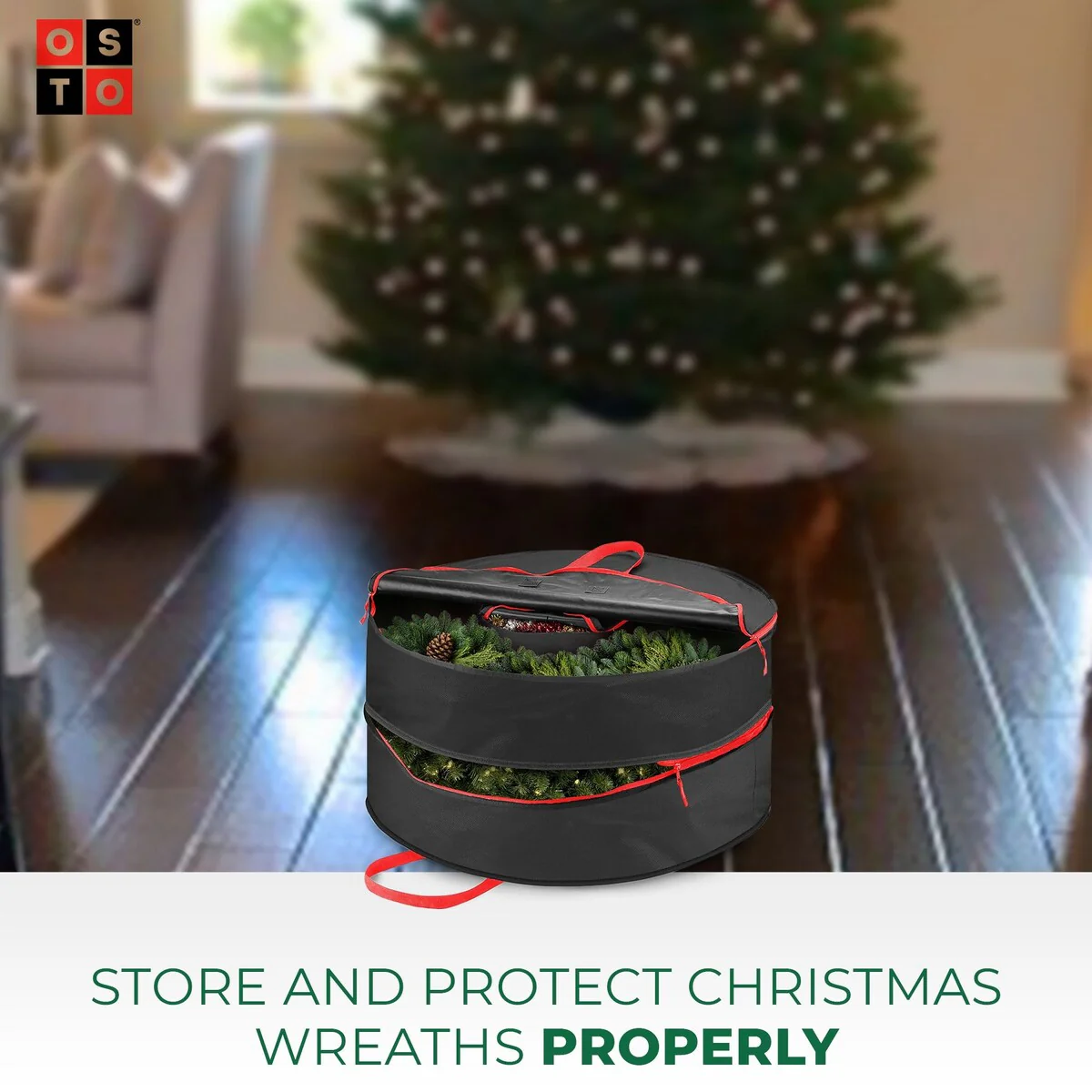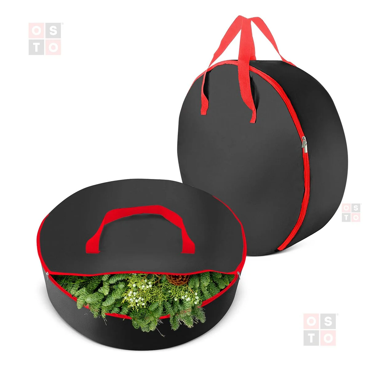 Double Attached Christmas Wreath Storage Bag Holder,24"600D Fabric - Black