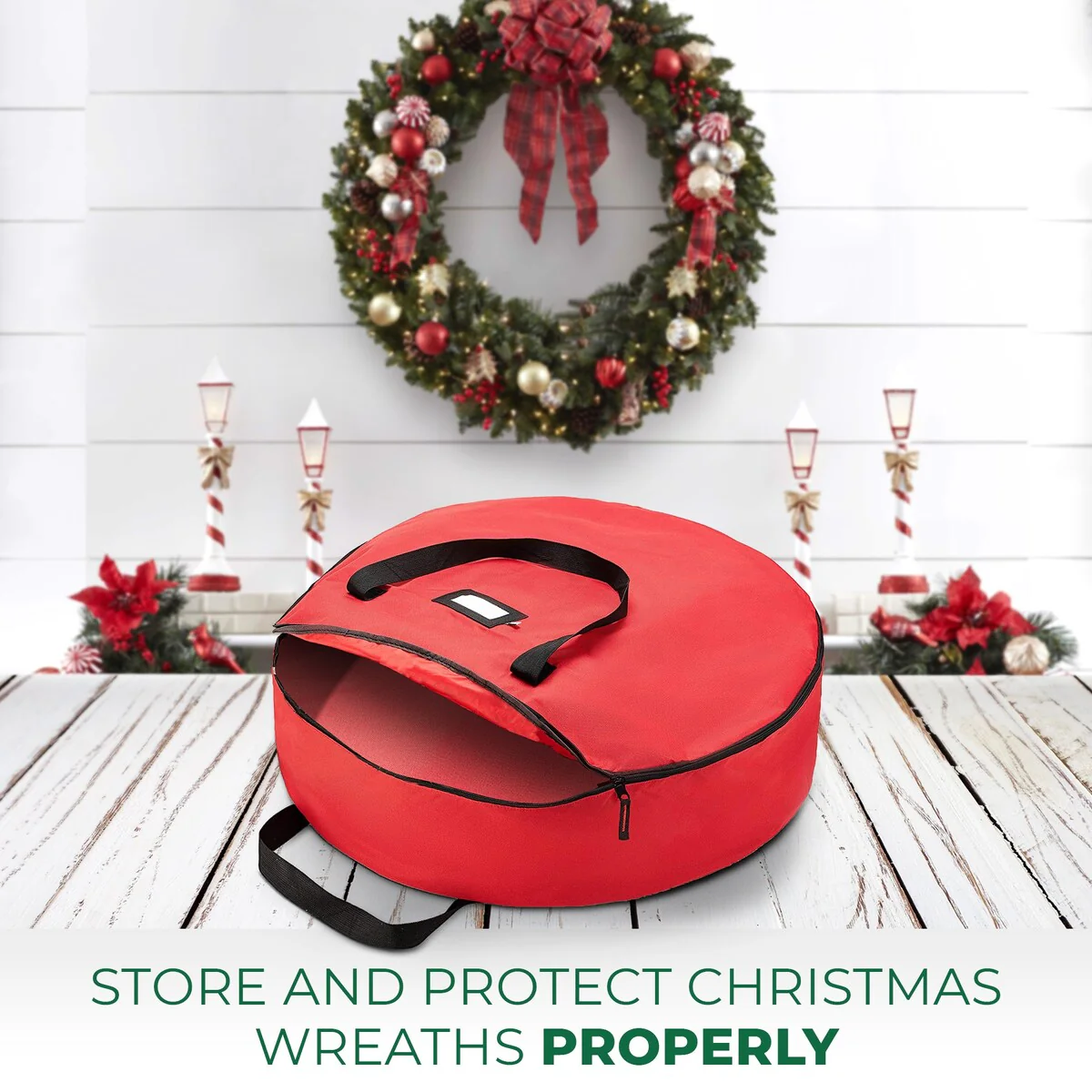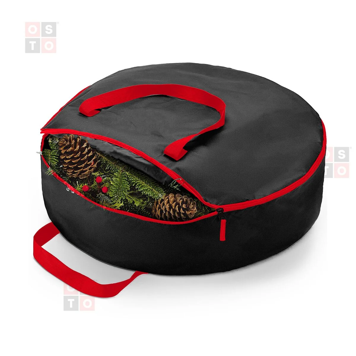 Double Attached Christmas Wreath Storage Bag Holder,24"600D Fabric - Red