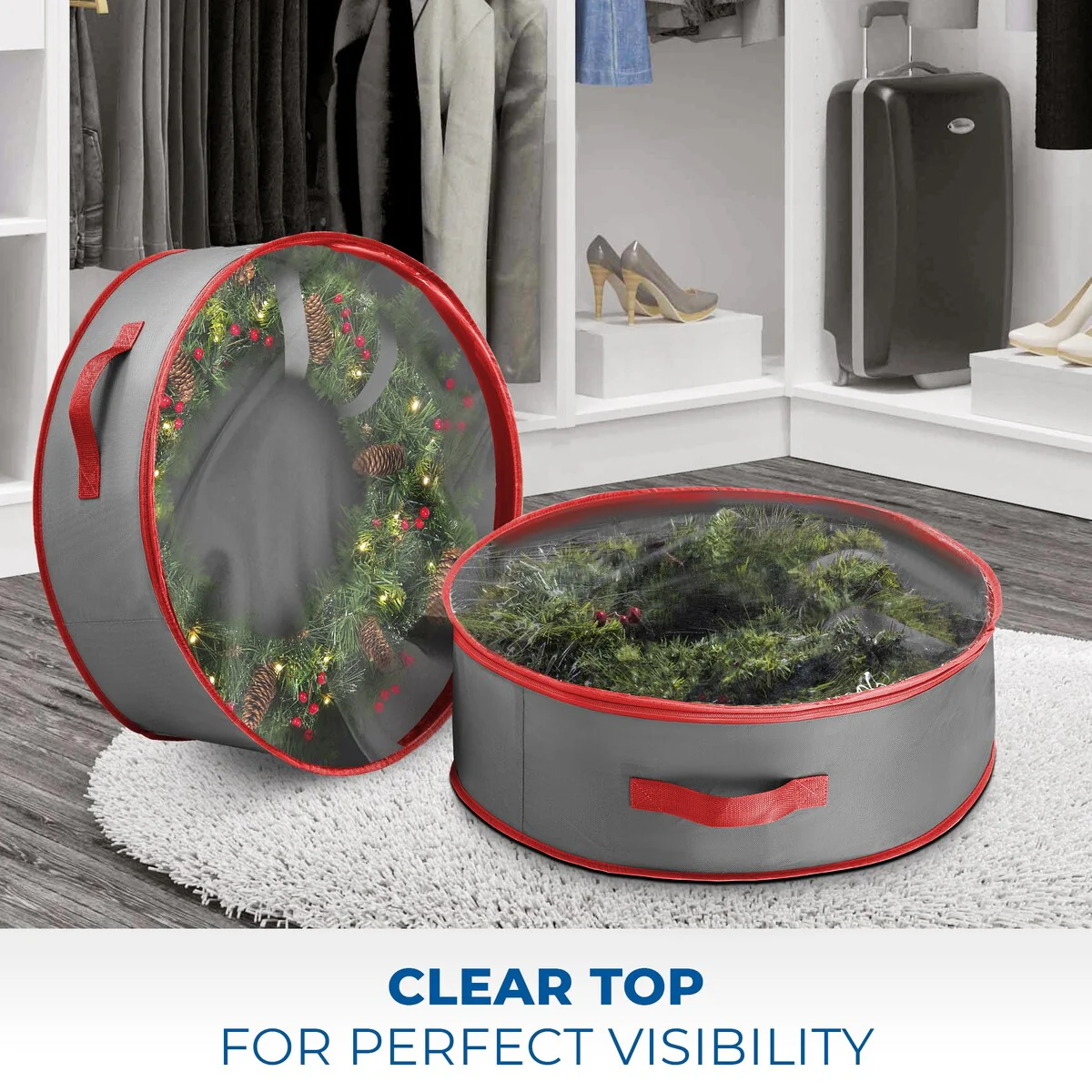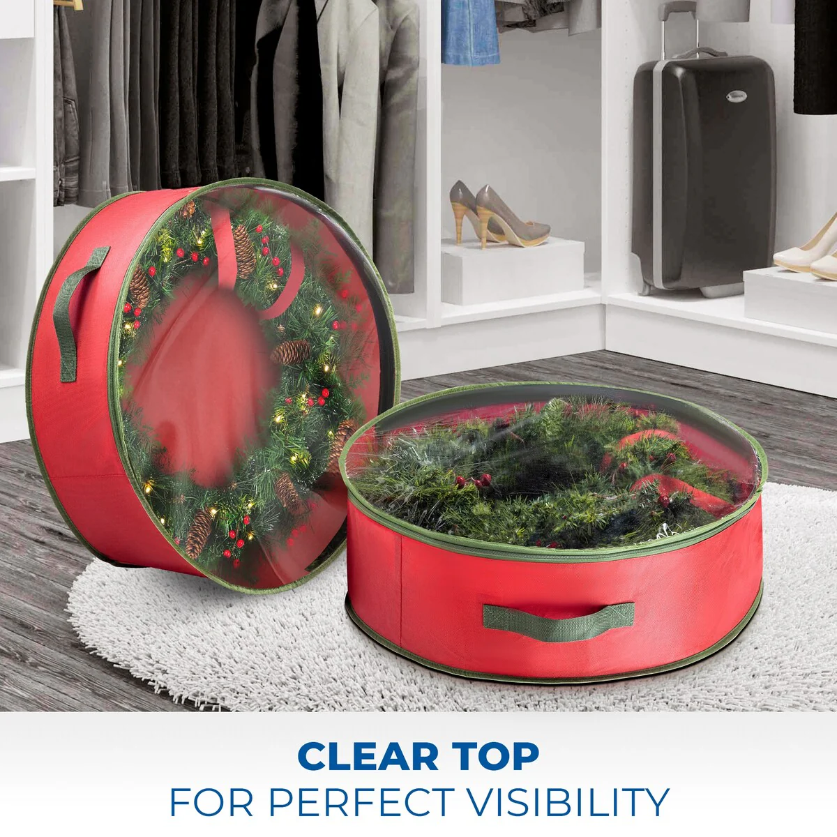 30 in Red with Clear Top Nonwoven Wreath Storage Bag Holder 2-Pack - 30 inch
