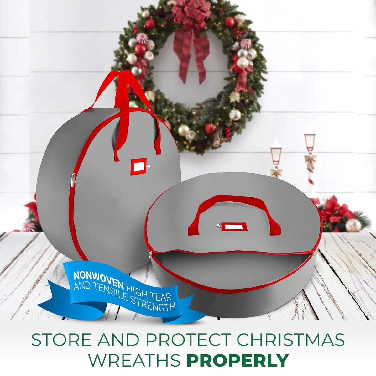 2-Pack Christmas Wreath Storage Bag Holder, 24"-Tear-Resistant - Red