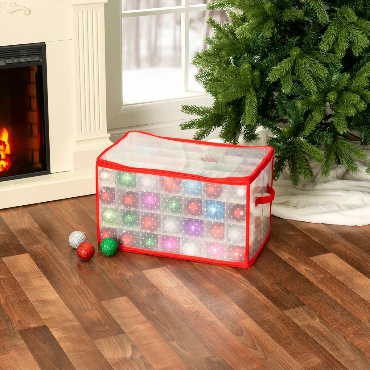 Home Basics Red Zippered 112 Ornament Storage Box