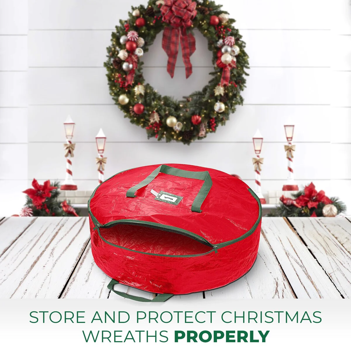 48 in. Red Christmas Tear Proof Artificial Wreath Storage Bag - 48 inch