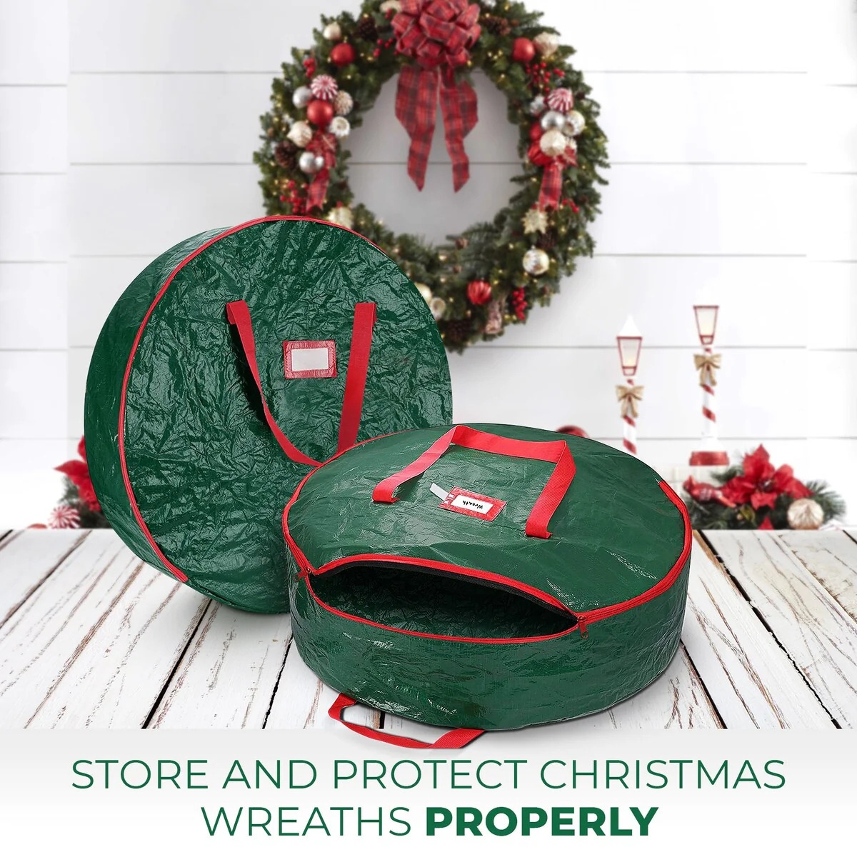 2-Pack Christmas Wreath Storage Bag Holder, 24"-Tear-Resistant - Green
