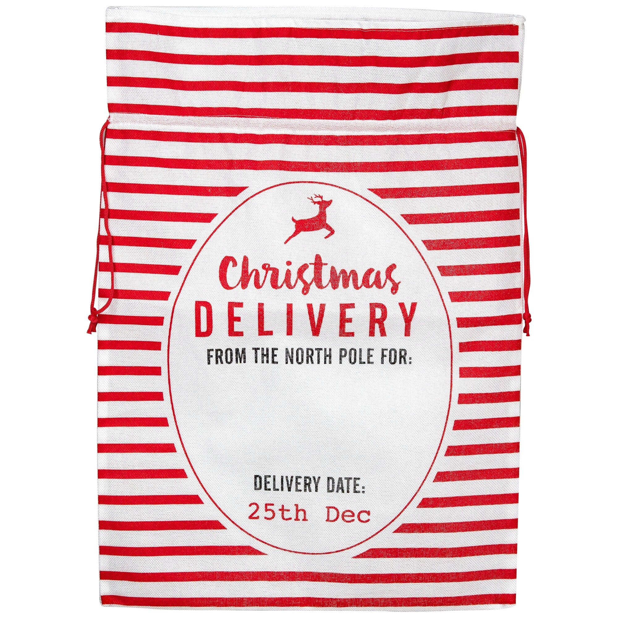27" Beige and Red Striped "Christmas Delivery" Tie Gift Bag