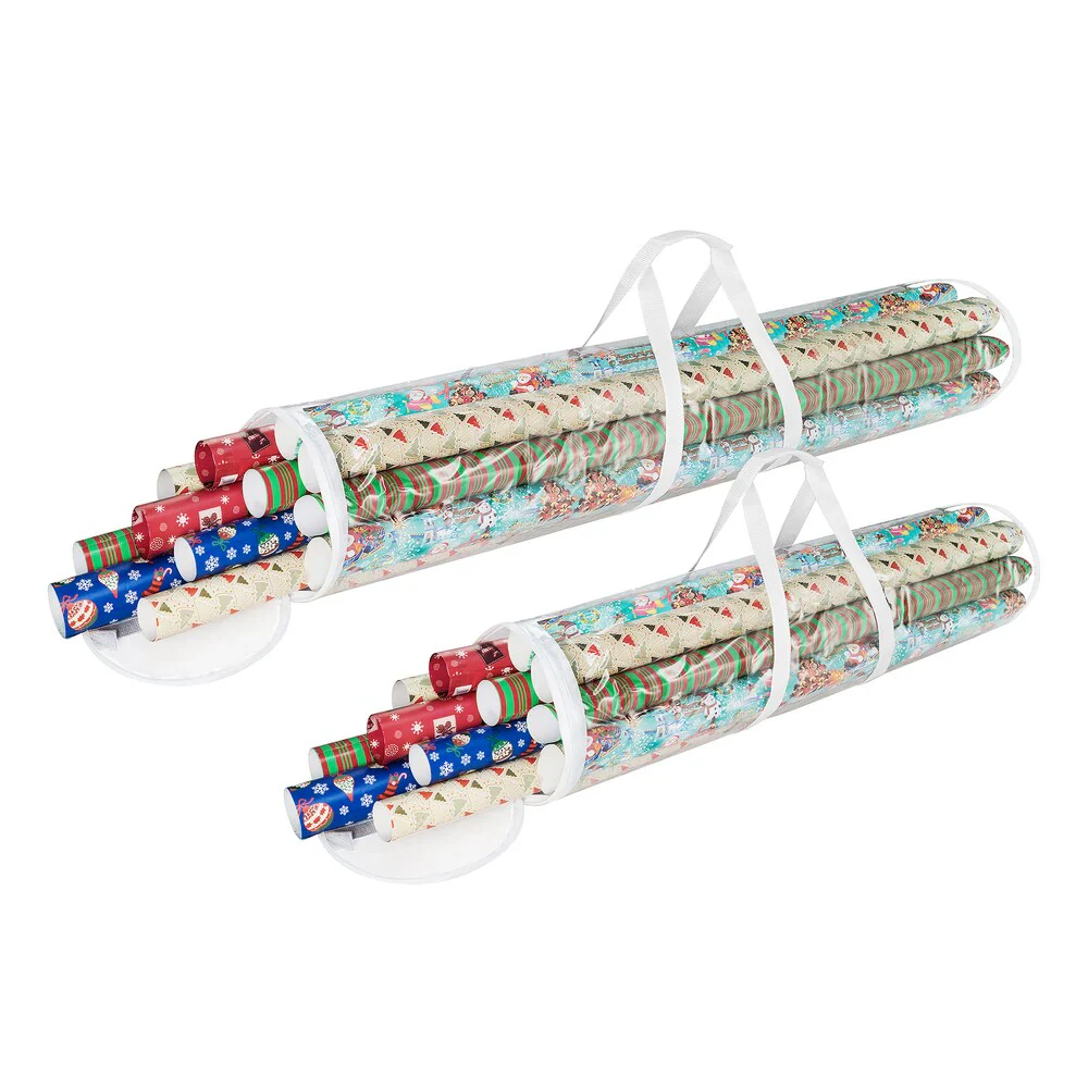 Elf Stor White and Clear PVC 40-inch and 31-inch Christmas Wrapping Paper Storage Bag Set