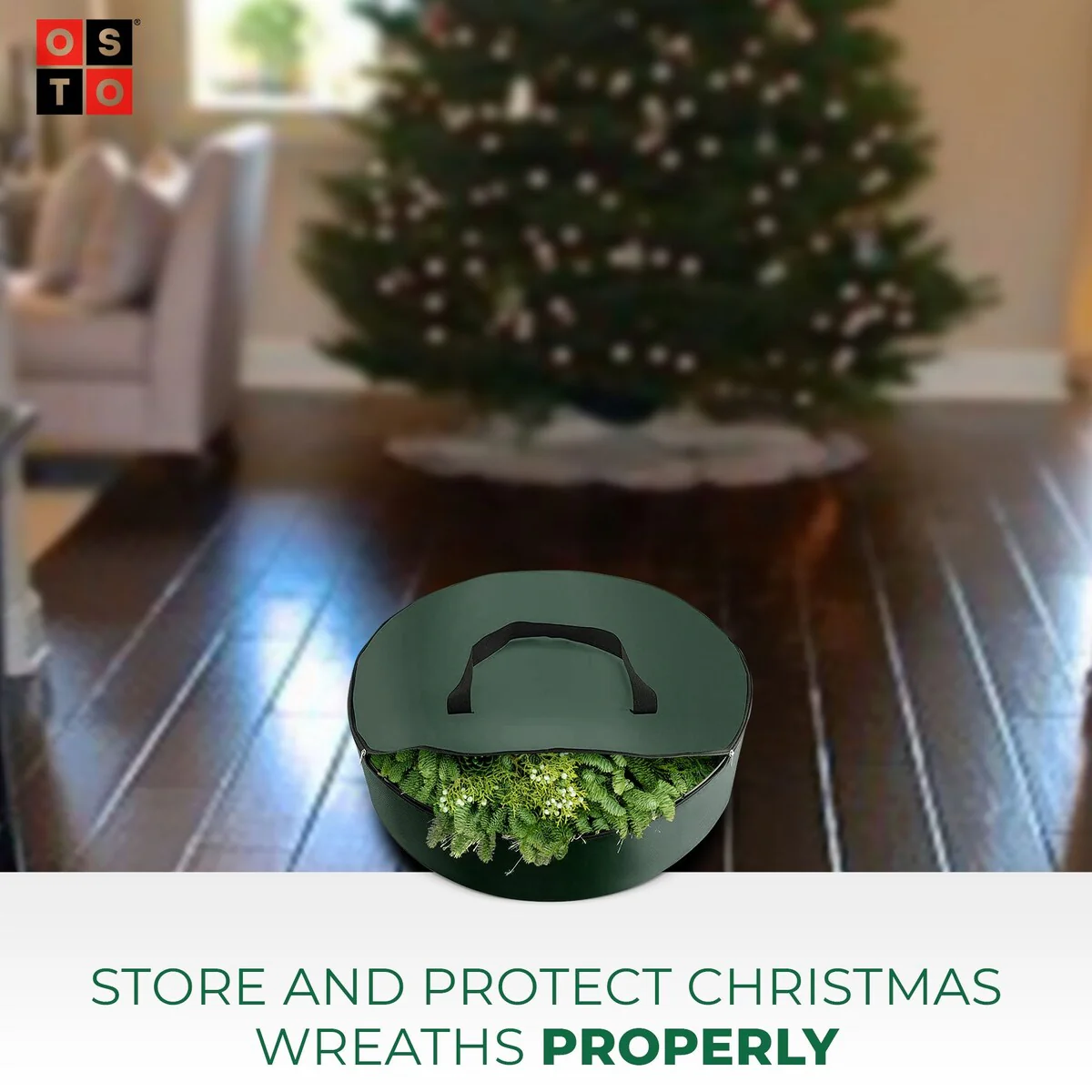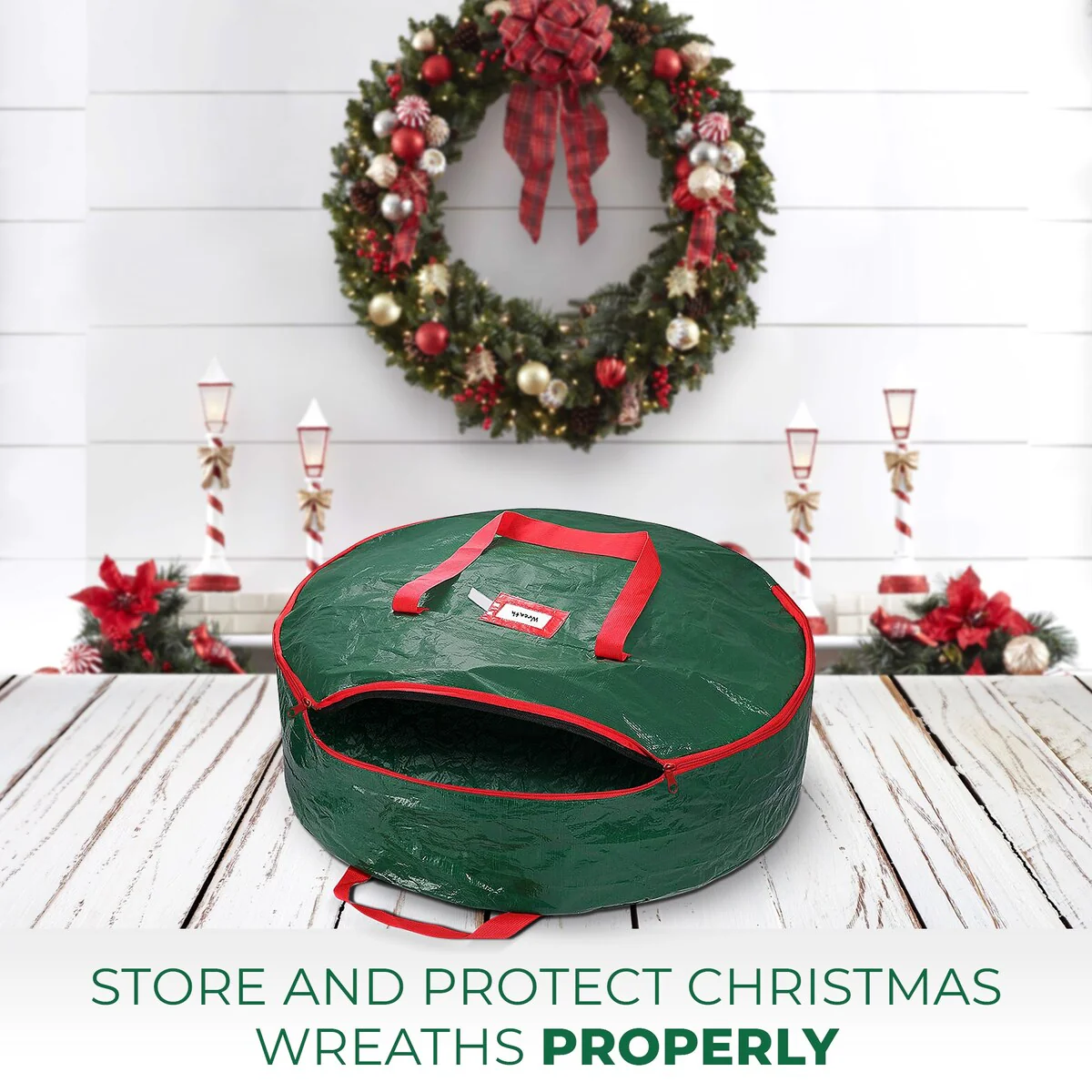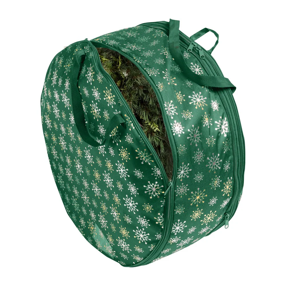 Water Resistant Christmas Wreath Storage Bag Holder, 24"PE Storage - Green