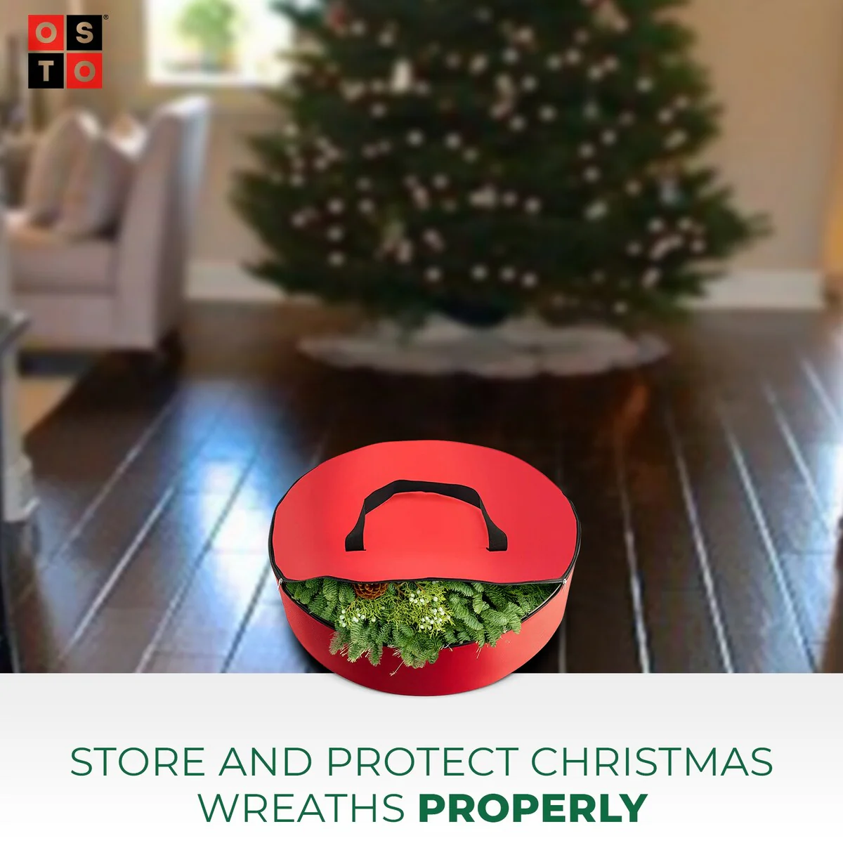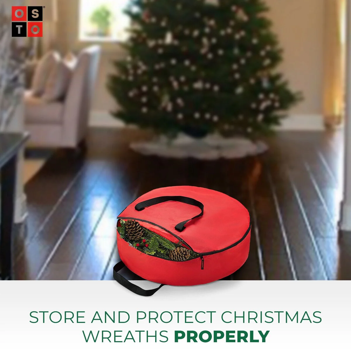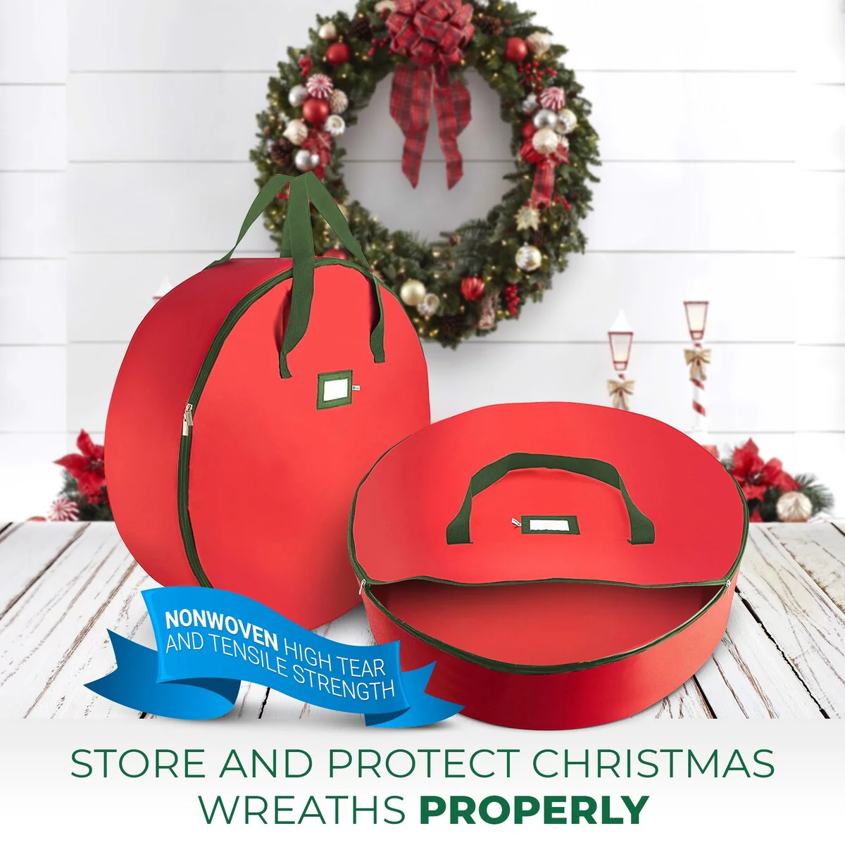 Superior Christmas Wreath Storage Bag Holder, 30" Tear Proof -Red - Red