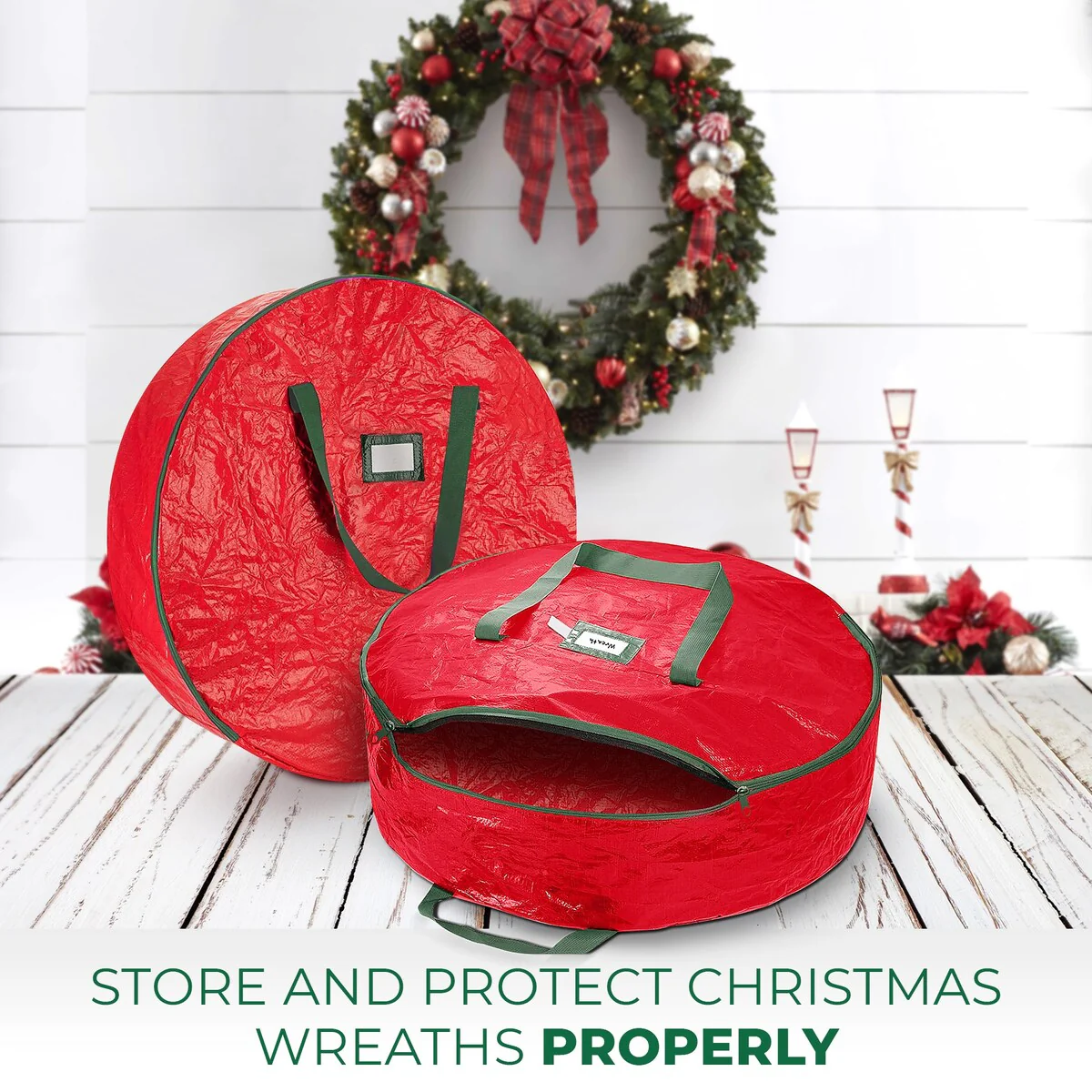 2-Pack Christmas Wreath Storage Bag Holder, 30"-Tear-Resistant - Red