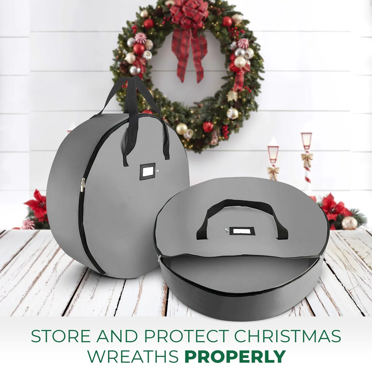 2-Pack Christmas Wreath Storage Bag Holder, 24"-Tear-Resistant-Black - Black