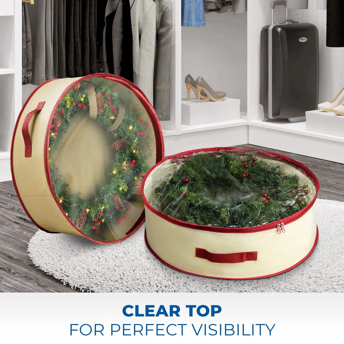 36 in Red with Clear Top Nonwoven Wreath Storage Bag Holder 2-Pack - 36 inch