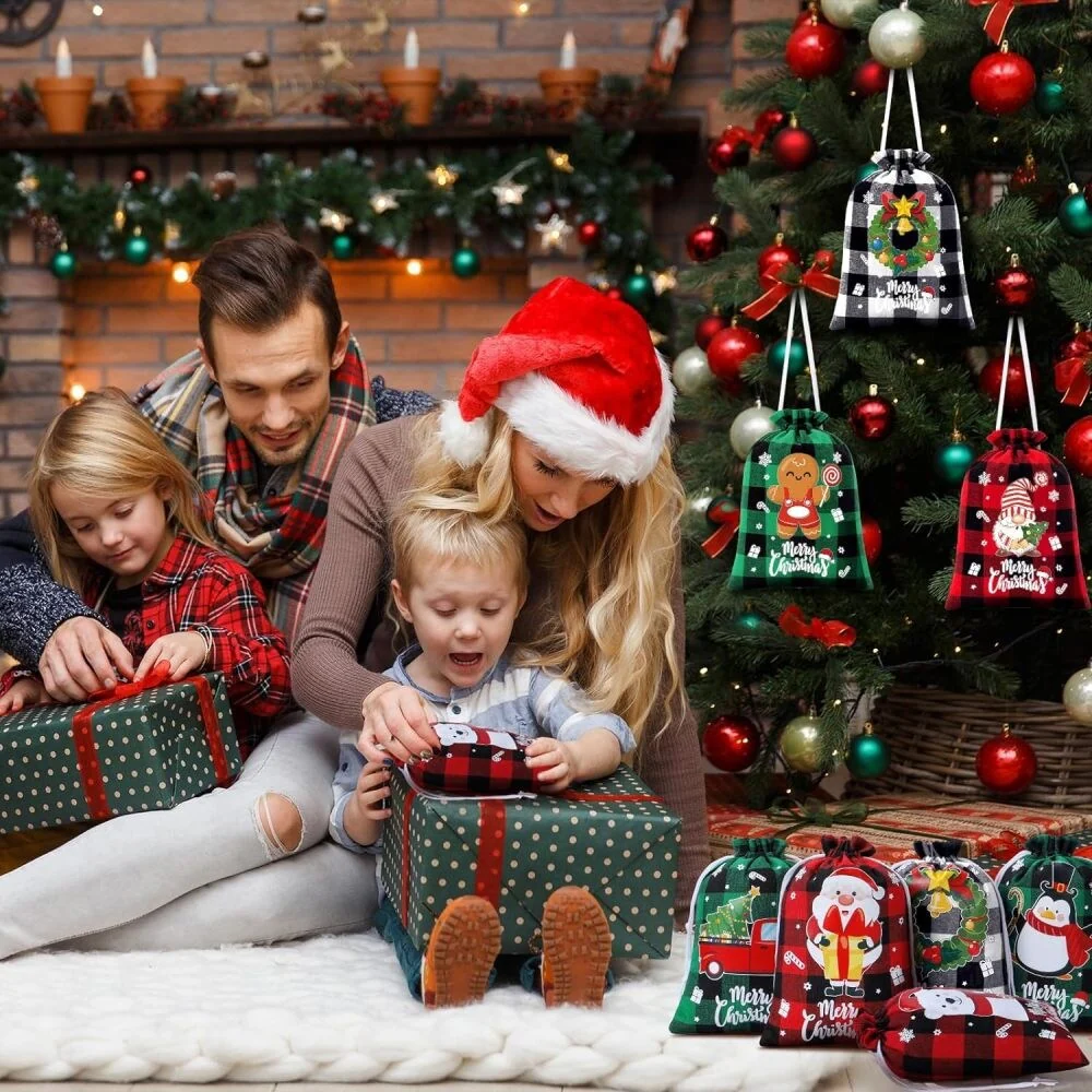 72-Piece Burlap Christmas Drawstring Bags Christmas Candy Bags Reusable Gift Wrapping Bags