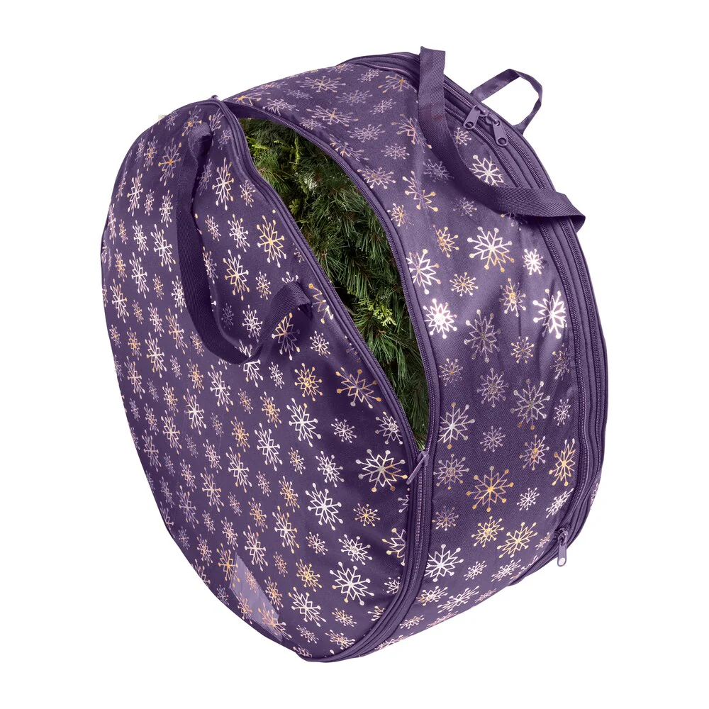 Honey-Can-Do Navy Blue Polyester 24" Wreath Storage Bag - Navy Blue Snowflake