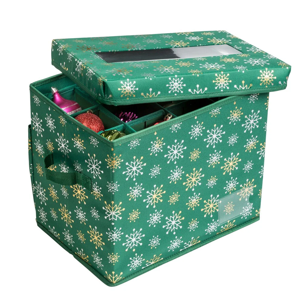24" Red and Green Christmas Decoration Storage Bag with Clear Transparent Lid