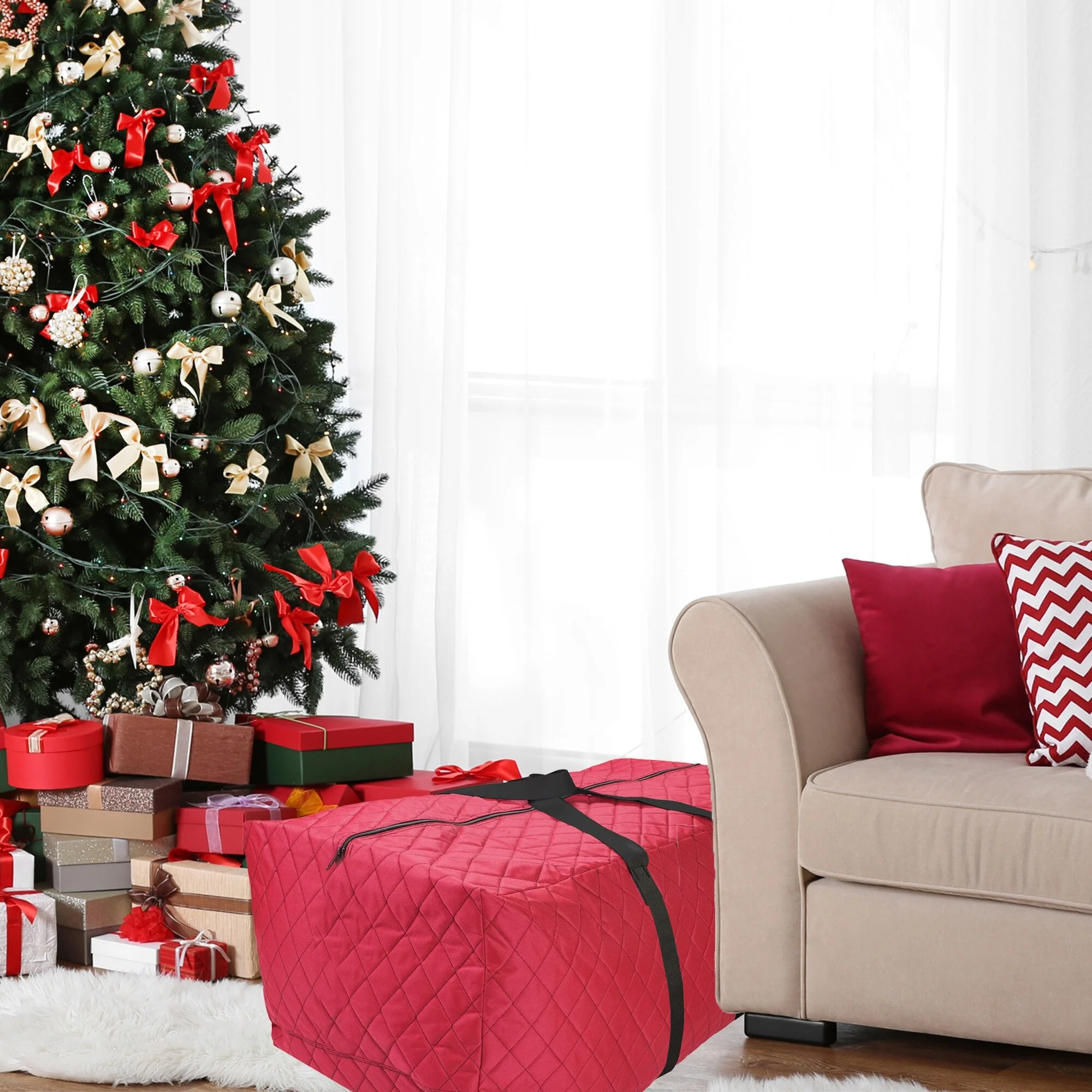 30" Red and Black Extra Large Pop-Up Christmas Decorations Storage Bag