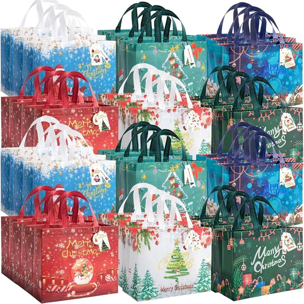 36-Piece Christmas Gift Bags with Pattern of Santa Claus, Christmas Tree and Snowman