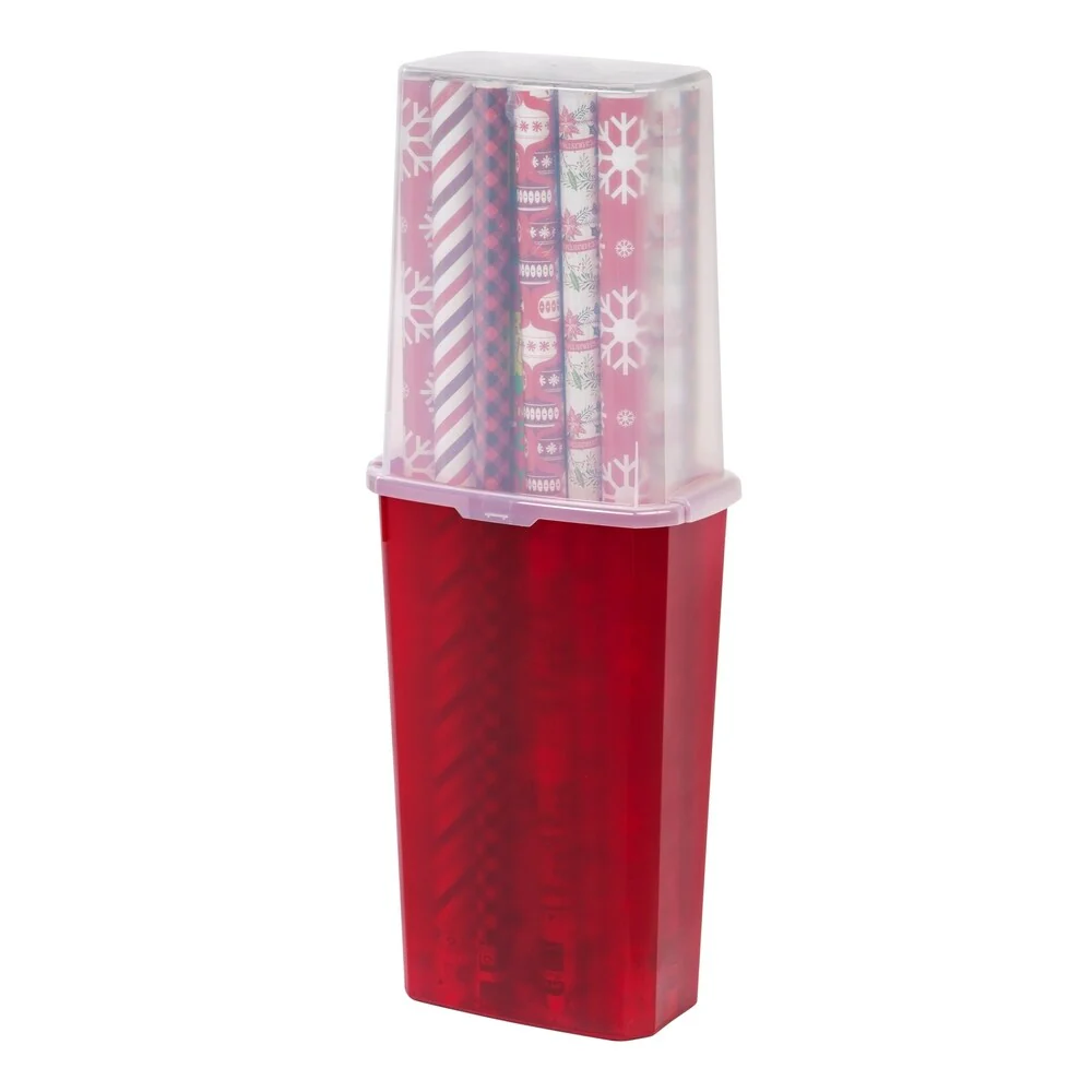 Honey-Can-Do Red and Green Plaid Polyester Gift Wrap Storage Organizer