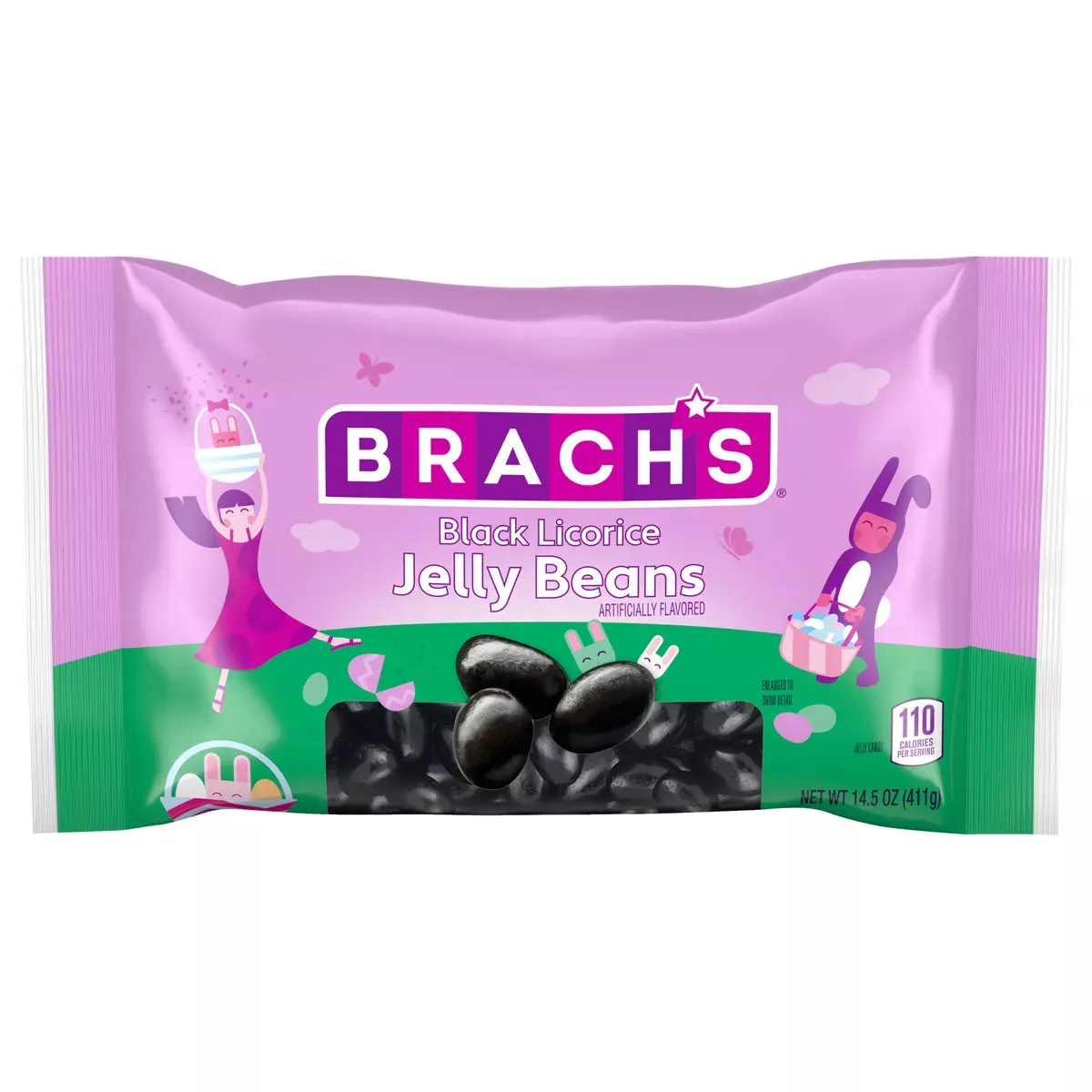 There’s something so brooding and mysterious about these extra large, extra glossy black jellybeans. Shining like obsidian, they call forth our innermost cravings for all things licorice, and that shadowy allure makes them ideal for a distinguished black and white candy display, an eye-catching Easter basket treat, or a ghoulish Halloween goody bag. After all, their bold licorice taste is no mystery.