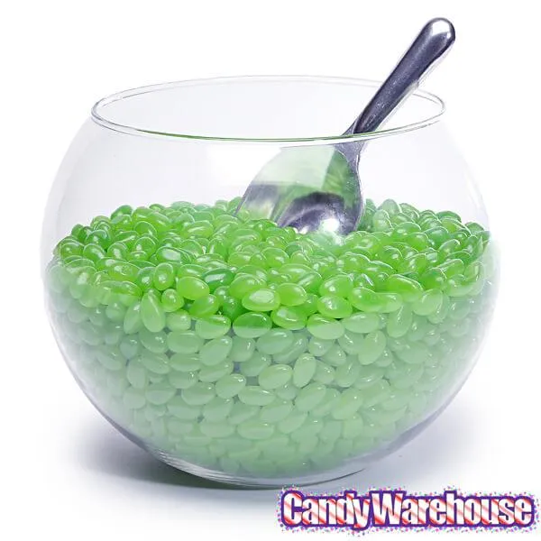 Bag contains 5 pounds of Teenee Beanee Green Apple Jelly Beans Candy.