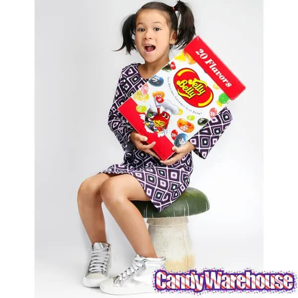 Gourmet jelly beans in an assortment of 20 delicious flavors are sealed inside snack size pouches and packed in a fun jumbo-size gift box!