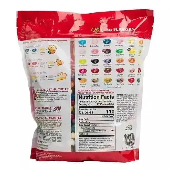Indulge in the delicious taste of gourmet jelly beans, crafted with real fruit juices and purees from 14 different fruits! This generous 3 lb. bag is filled with vibrant, true-to-life flavors, bringing a taste of quality with every bite. Made from high-quality ingredients, each bean bursts with authentic flavor, making them a treat you’ll want to share—or savor all on your own! Perfect for candy dishes, gifting, or just satisfying that sweet craving.