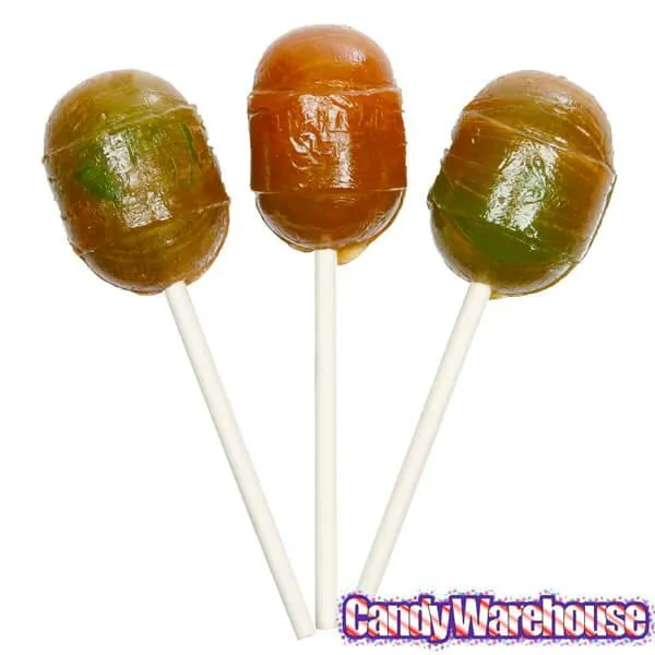 These delightful MEGA sized Blow Pops are actually tri-tiered suckers, starting off with a fancy caramel flavored outer coat, which is quickly followed by a delectable layer of green appley goodness, just like the actual version! But the real fun lies in the center -- as promised by the Blow Pop name, once you bite down, you’re greeted by a fantastic burst of sweet green apple bubblegum! The fun never stops with Blow Pops.