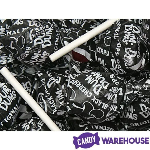 Bag contains 5 pounds of Cherry Dum Dums Black Party Pops.