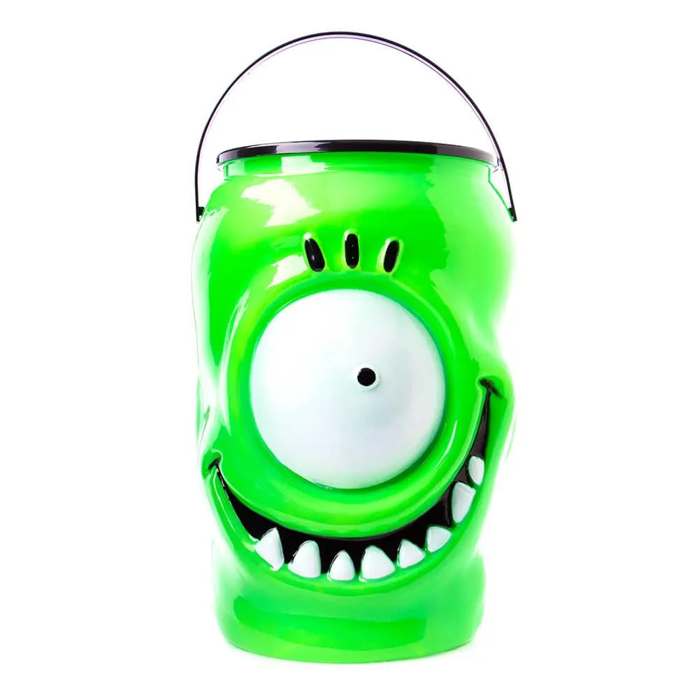 Meet the friendly Chupa Chups monster of Chupaville...he's wild for delicious lollipops! Pop open the top of these awesome one-eyed monster-shaped containers to reveal a yummy heap of Chupa Chups lollipops. Filled with delectable red, blue, and green suckers, a friendly translucent monster head smiles gap-toothed at trick-or-treaters with a huge, unblinking eye. Frightfully fun, this set of sweet-filled Halloween decorations will have you smiling for all the Halloween nights to come. Proof that sweet and juicy things come in big, crazy packages!