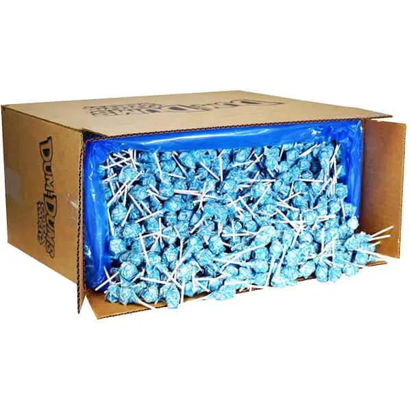 Bag contains 5 pounds of Cotton Candy Dum Dums Caribbean Blue Party Pops.