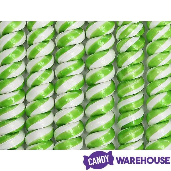 Box contains 12 wrapped Green & White Tremendously Tall Twist Pops.