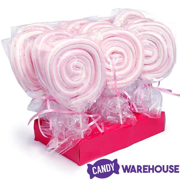 Box contains 18 Pink Jumbo Marshmallow Roller Pops.