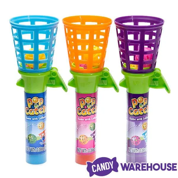 Experience the magic of pop and catch ball toys with a sweet surprise inside every toy! Concealing fruit flavored suckers in the handle, players can re-energize with a few licks of the lollipop after hours of challenging entertainment. Each Pop & Catch Game with Lollipop package includes two plastic balls that launch about 4 feet up when you press the "pop" button. The goal is to catch the little ball in the basket again and again, requiring tremendous hand-eye coordination. Designed in an assortment of three flavor and color combinations, these delicious interactive candies are perfect party favors and goody bag stuffers sure to make your event more fun!