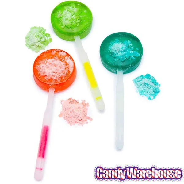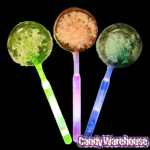 Lick, dip, and glow! In place of a normal, boring old lollipop stick, these cherry, blue raspberry, and green apple flavored pops are equipped with a glow stick that, with one simple snap, will illuminate the candy with an eerie colored light. Lick the lollipop, and then dunk it into the pack of popping candy for a sweet treat with a tongue-tingling twist...a candy fireworks show in your mouth! Now you can enjoy your popping candy and lollipops in the dark without any fear! And really, isn’t that all we’ve ever wanted in a candy?