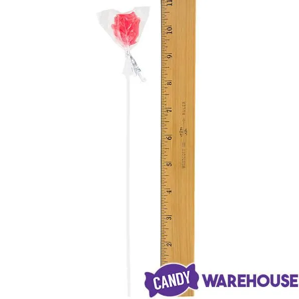 Bag contains 100 Assorted Colors 3-D Hard Candy Rose Lollipops.