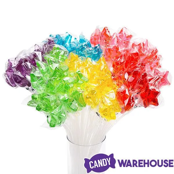 Bag contains 100 Assorted Colors Star-Shaped Hard Candy Lollipops.