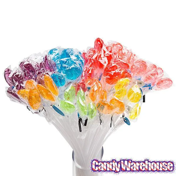 Hut, hut . . . hike! It’s time for sports on a stick! These colorful, fruity-sweet sports lollipops are shaped like baseballs, basketballs, soccer balls, and footballs. They come on long, flexible sticks for easy arranging and fun eatin’! Great for decorating a championship table or stuffing into trophies at sports related events, the total length of these lollipops is about 12 inches and each piece is individually wrapped with cellophane.