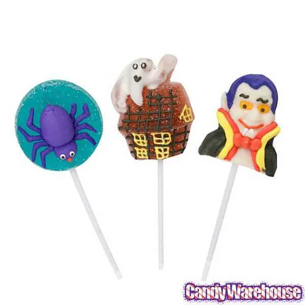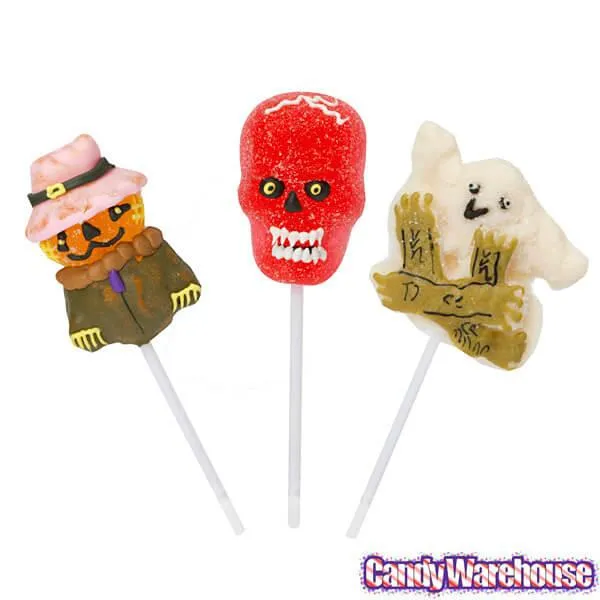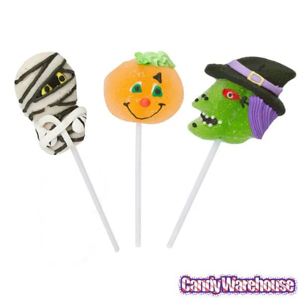 Display box contains 12 individually wrapped Halloween Characters Jelly Lollipops.