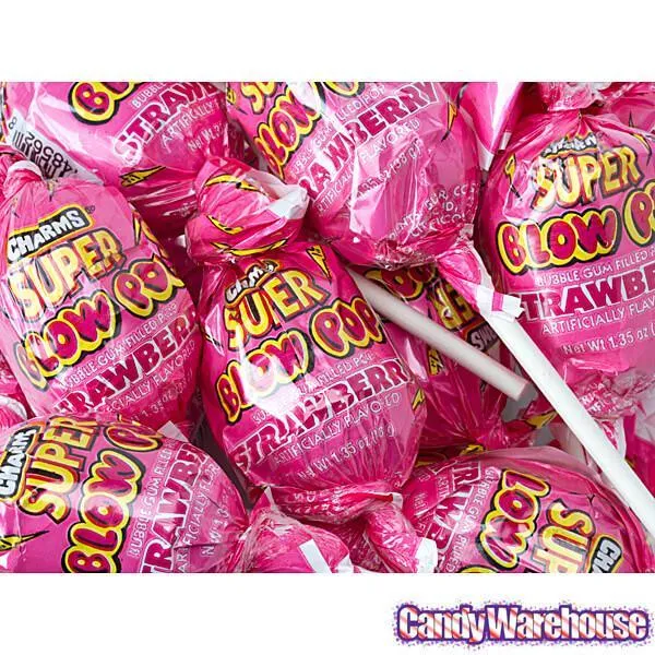 Every year, California harvests enough strawberries to wrap around planet Earth 15 times! We'd like to see that super sweet image on Google Earth one day. In the meantime, we'll stick to stuffing ourselves with the crimson wonder fruit and plenty of these delectable strawberry-flavored Blow Pops. Bigger than the Charms original suckers, Super Blow Pops offer a bunch more hard candy goodness to savor and a bigger wad of ultra sweet bubblegum than their regular-sized candy cousins. These strawberry lollipops are packaged with a snazzy bright red wrapper, making the treats cute enough to display for both Christmas, Valentine's Day and any day of the year!