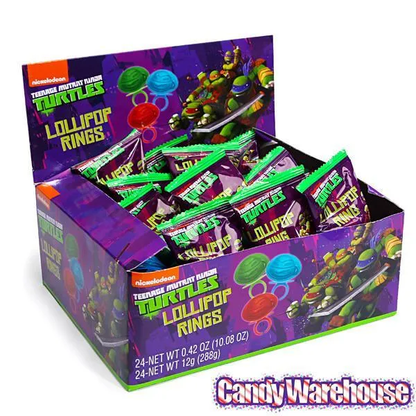 Display box contains 24 Teenage Mutant Ninja Turtles Lollipop Candy Rings.