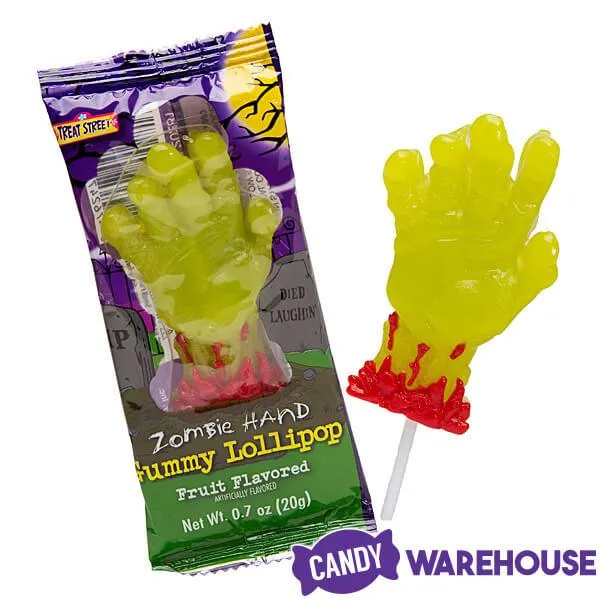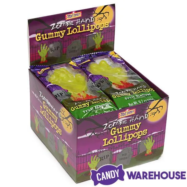 Display box contains 12 Zombie Hand Gummy Lollipops.