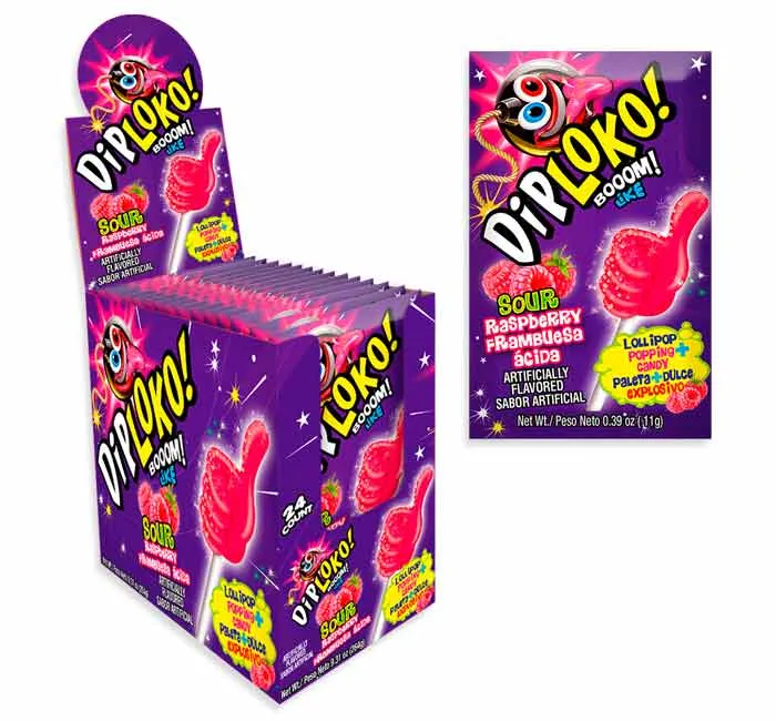 Dip Loko Lollipop with Popping Candy - Sour Raspberry: 24-Piece Box