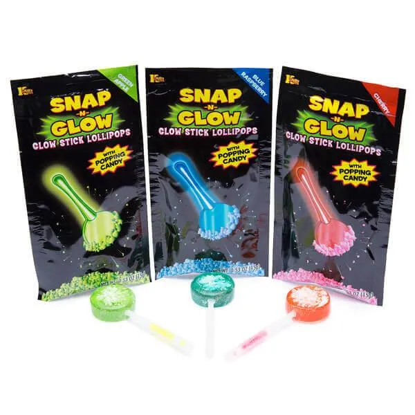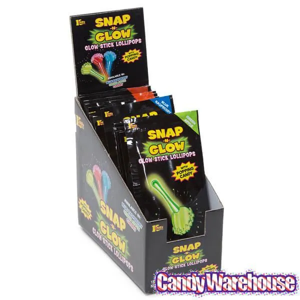 Snap-n-Glow Lollipop with Popping Powder Candy Packs: 18-Piece Display
