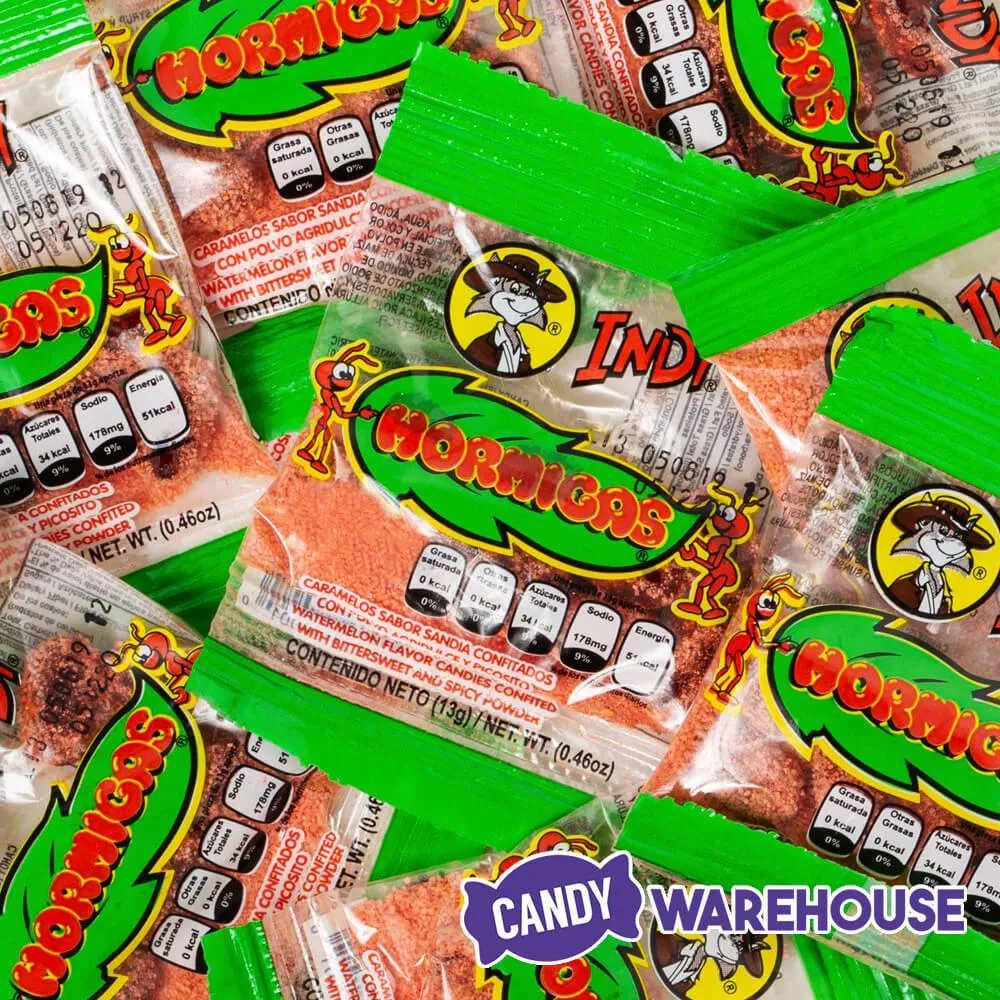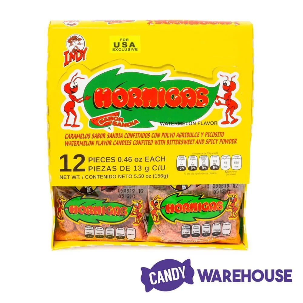 Expand your confectionary horizons with Hormigas spicy watermelon powder candy, a popular favorite from Mexico’s beloved Productos Indy. Named for the industrious little mound-building fire ants, Hormigas watermelon flavored candy is coated with spicy powder from chili peppers that delivers a “hurts so good” sting to your mouth. This 12-piece box contains individual bags that are easy to pack into lunchboxes and backpacks for some sweet, sour, and spicy south-of-the-border snacking that brings the heat. Let Candy Warehouse be your reliable resource for the world’s best bulk. We’ve got hundreds of unique Hispanic confections in stock for your Cinco de Mayo and Quinceanera party gift bags along with a crowd-pleasing selection ofpinata candy filler.