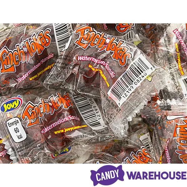 Bag contains 32 pieces of individually wrapped Jovy Enchilokas Watermelon Gummy Candy.