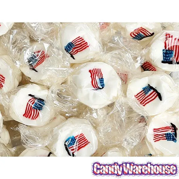 Show your patriotism by munching this delicious, handmade peppermint taffy with an American flag design built into each piece of candy!