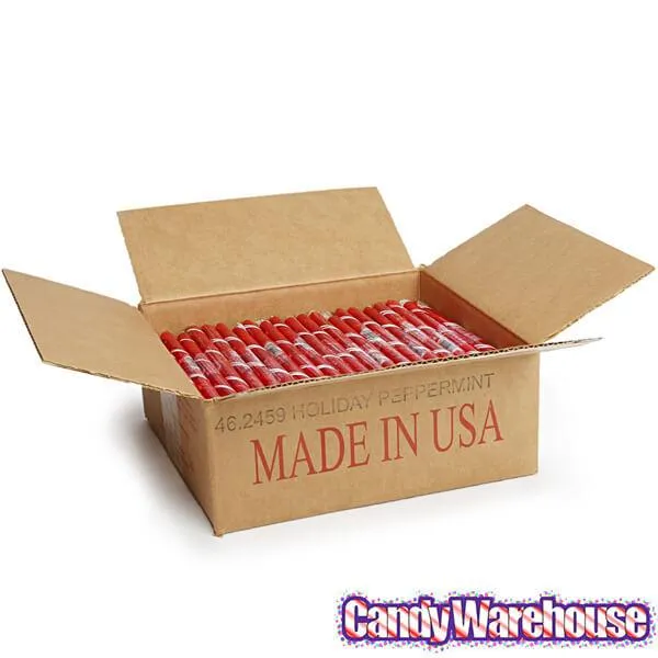 Box contains 100 individually wrapped Christmas Peppermint Hard Candy Sticks.
