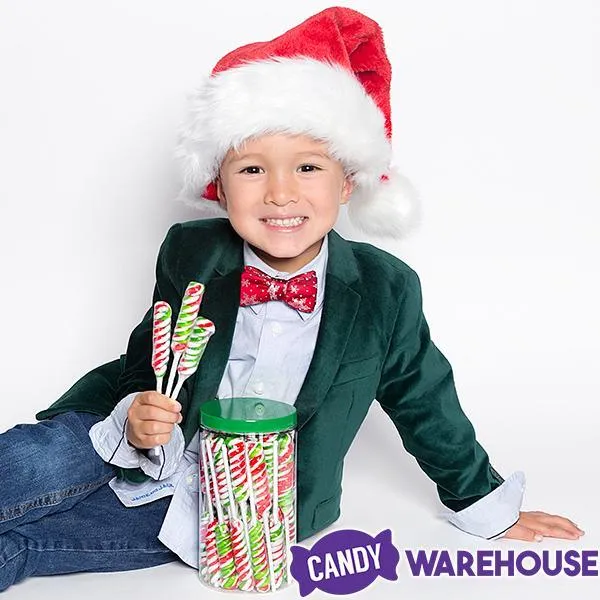 Jar contains 48 individually wrapped Christmas Tesla's Tiny Twist Pops.