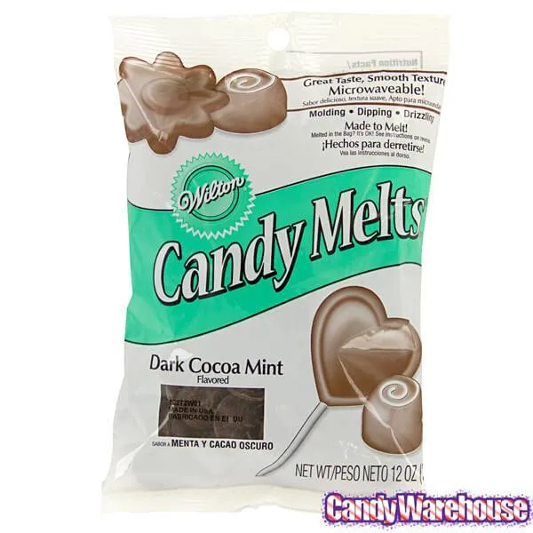 Versatile, creamy, and easy to melt, these dark cocoa and mint flavored wafers are ideal for all your candy making, molding, dipping, or coating needs.Bag contains 12 ounces of Brown Dark Cocoa Mint Candy Melts... that's about 144 pieces.Made in the USA.Shipping Weight ~ 1 lb. Kosher Certified.