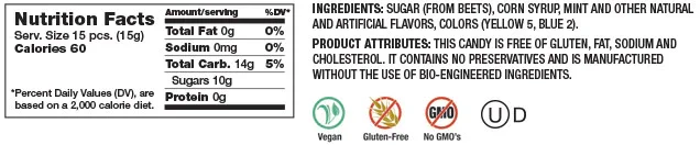 Bag contains 400 pieces of Glitterati Meeting Mints Candy. Total net weight 14 ounces.